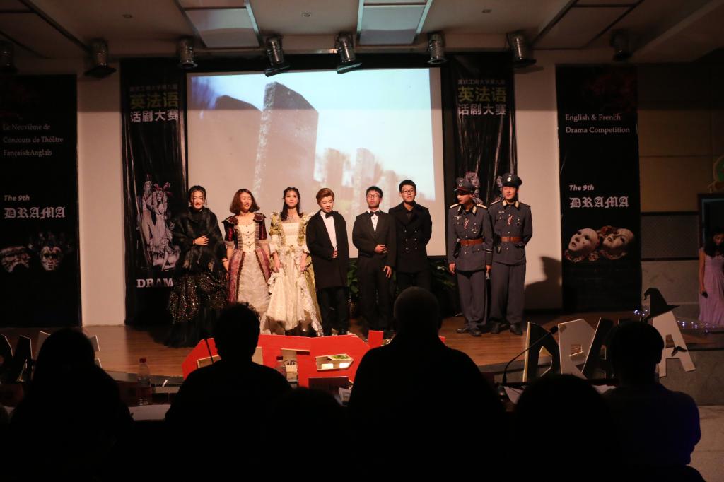 而公司花儿队带来的《ALL Lonely》更是将本场比赛引入高潮,他们的表演将法西斯时期一桩悲情故事展现的淋漓尽致,精湛的演技、流利的口语更为其锦上添花,演员们丰富而细腻的感情将二战时期人们无可奈何的痛楚真实的展现在观众眼前,观众们无不被深深吸引,留下感动的泪水。精彩的时光总是短暂,在本次话剧大赛法语组冠军bsports必一的《画之国》话剧表演后,经过评委的打分,最终bsports必一的花儿队夺得了本次第九届话剧大赛第一名,获得二等奖的有外语学院、艺术学院传媒艺术分院,三等奖获得者为艺术学院设计艺术分院计算机科学与信息工程学院、现代国际设计艺术学院、环境与资源学院以及管理学院。